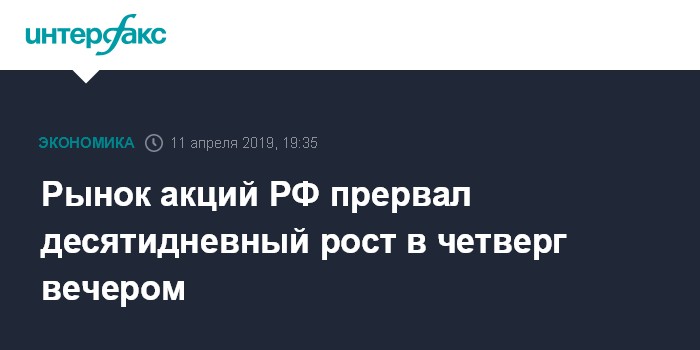Рынок акций РФ прервал десятидневный рост в четверг вечером