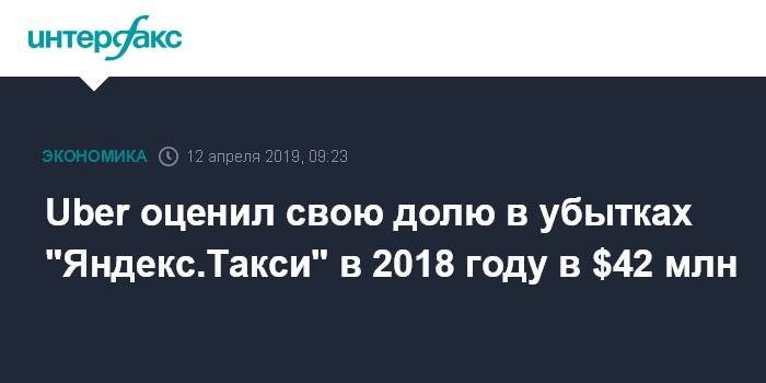 Москва. 12 апреля. INTERFAX.RU - Совместное предприятие с "Яндексом" по онлайн-заказу поездок в такси пока приносит Uber убытки, следует из проспекта компании к IPO.