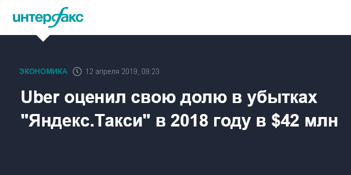 Uber оценил свою долю в убытках "Яндекс.Такси" в 2018 году в $42 млн