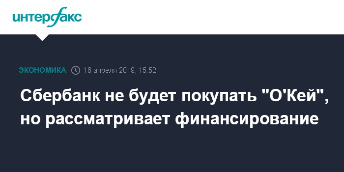 Представитель Сбербанка сказал "Интерфаксу", что банк "не планирует приобретение ритейлера "О'Кей" в собственных интересах".