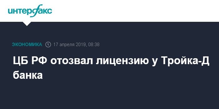 ЦБ РФ отозвал лицензию у Тройка-Д банка