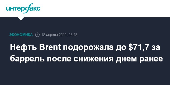 Нефть Brent подорожала до $71,7 за баррель после снижения днем ранее