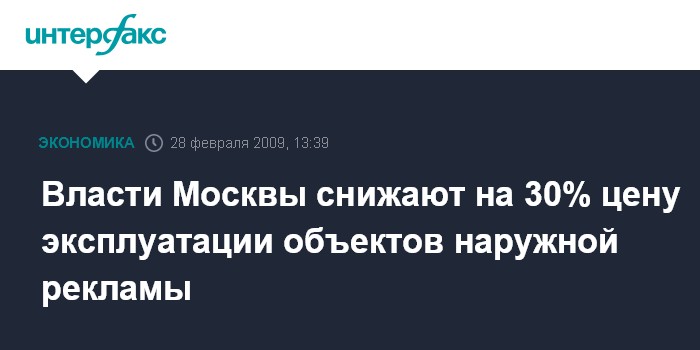 Власти Москвы снижают на 30% цену эксплуатации объектов наружной рекламы