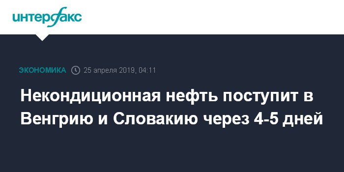 Москва. 25 апреля. INTERFAX.RU - "Грязная" российская нефть дойдет до Венгрии и Словакии менее чем через неделю, заявили в ОАО "Гомельтранснефть Дружба".