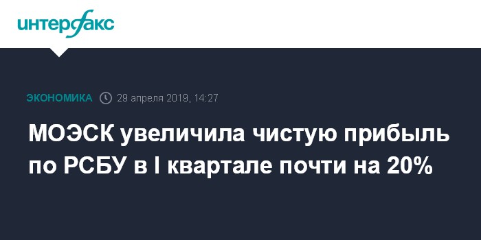 МОЭСК увеличила чистую прибыль по РСБУ в I квартале почти на 20%