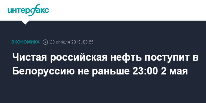 Чистая российская нефть поступит в Белоруссию не раньше 23:00 2 мая