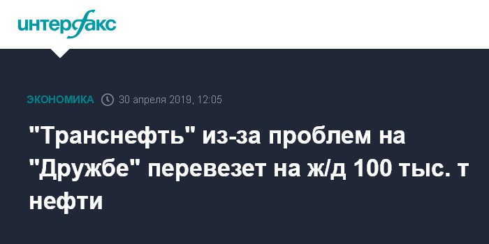 Москва. 30 апреля. INTERFAX.RU - ПАО "Транснефть" из-за проблем с загрязнением на нефтепроводе "Дружба" в мае предоставит ОАО "Российские железные дороги" возможность перевезти 100 тысяч тонн нефти, пишет корпоративное издание ж/д монополии.