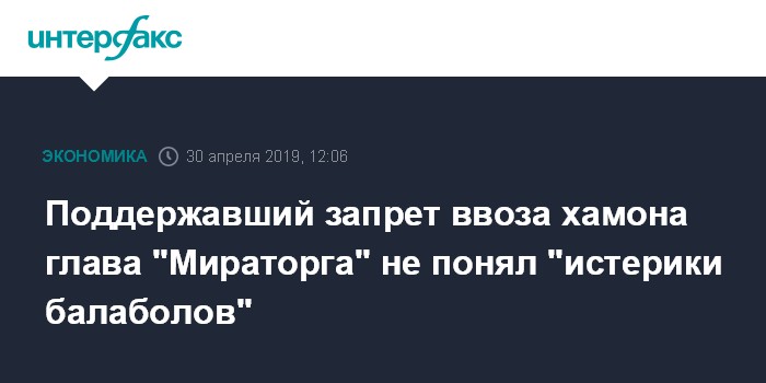 Поддержавший запрет ввоза хамона глава "Мираторга" не понял "истерики балаболов"