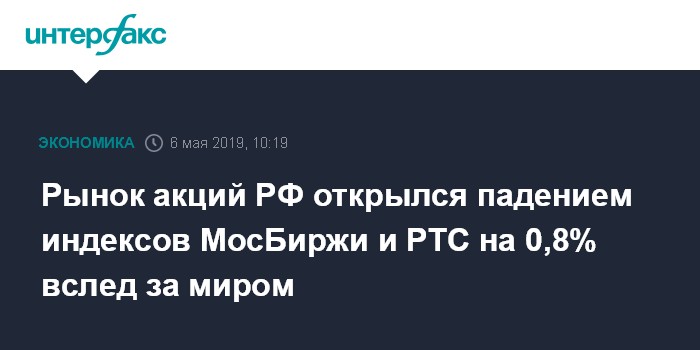 Рынок акций РФ открылся падением индексов МосБиржи и РТС на 0,8% вслед за миром