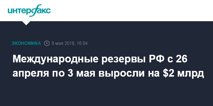 Международные резервы РФ с 26 апреля по 3 мая выросли на $2 млрд