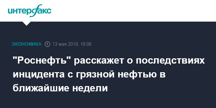 Москва. 13 мая. INTERFAX.RU - "Роснефть" в ближайшие недели представит информацию о последствиях для нефтяной компании от инцидента с загрязненной нефтью, сообщил первый вице-президент компании Павел Федоров в ходе телефонной конференции для инвесторов.