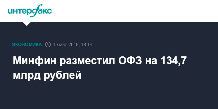 Минфин разместил ОФЗ на 134,7 млрд рублей