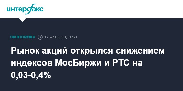 Рынок акций открылся снижением индексов МосБиржи и РТС на 0,03-0,4%