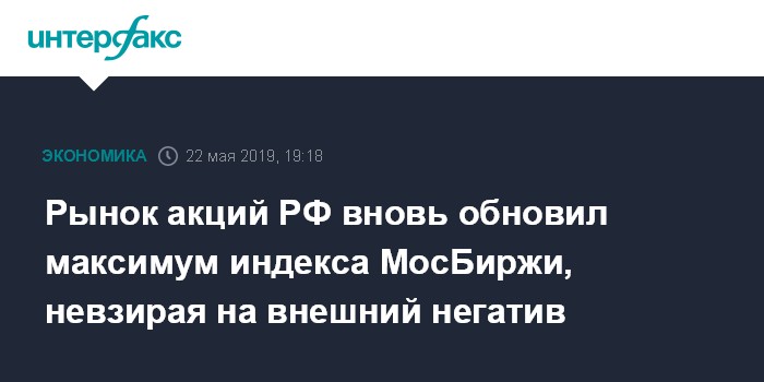 Рынок акций РФ вновь обновил максимум индекса МосБиржи, невзирая на внешний негатив