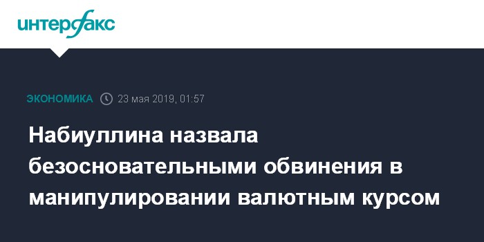 Москва. 23 мая. INTERFAX.RU - Поступающие из-за рубежа в адрес Российской Федерации обвинения в манипулировании валютным курсом абсолютно безосновательны, заявила председатель Банка России Эльвира Набиуллина в интервью, опубликованном в четверг в газете "Известия".
