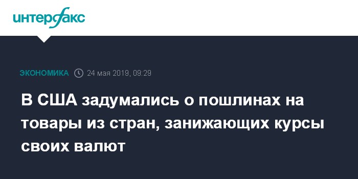 Москва. 24 мая. INTERFAX.RU - Министерство торговли США выступило с предложением о введении дополнительных пошлин на импорт товаров из стран, которые занижают курсы своих национальных валют по отношению к американскому доллару, сообщил министр торговли Уилбур Росс.