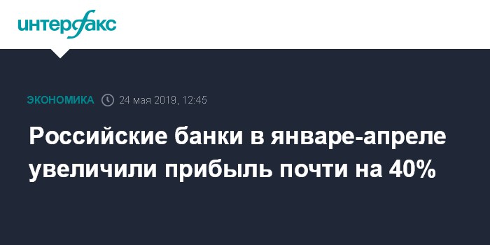 Москва. 24 мая. INTERFAX.RU - Российские банки в январе-апреле 2019 года увеличили прибыль на 39,7% - до 750 млрд рублей по сравнению с 537 млрд рублей прибыли годом ранее, говорится в обзоре банковского сектора, размещенном на сайте ЦБ РФ.