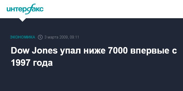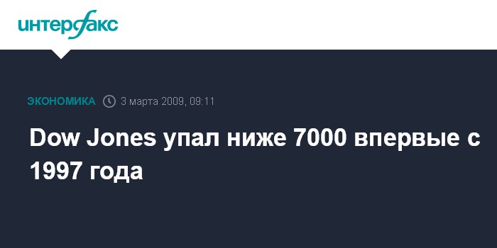 Dow Jones упал ниже 7000 впервые с 1997 года