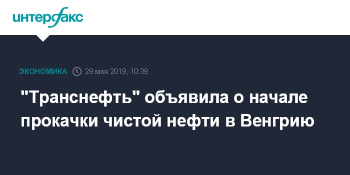Москва. 29 мая. INTERFAX.RU - Чистая нефть из России дойдет до Венгрии по южной ветке нефтепровода "Дружба" вечером 29 мая, заявил в среду советник президента "Транснефти" Игорь Демин.