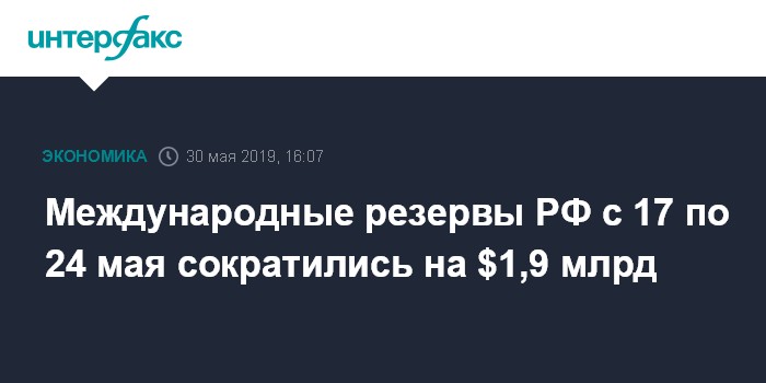Международные резервы РФ с 17 по 24 мая сократились на $1,9 млрд