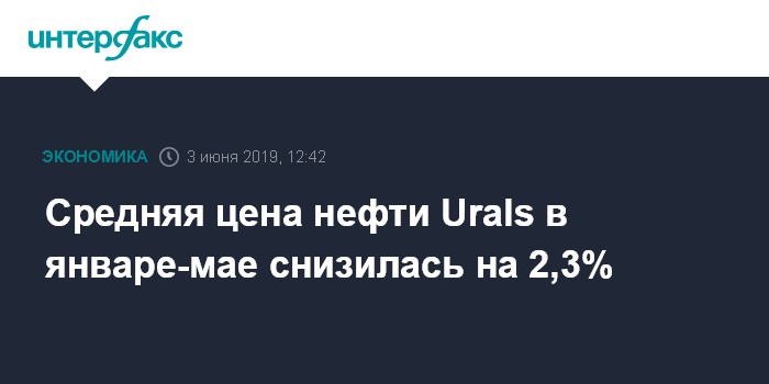 Москва. 3 июня. INTERFAX.RU - Средняя цена нефти марки Urals в январе-мае 2019 года оказалась на уровне $66,34 за баррель, говорится в сообщении Минфина РФ.