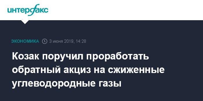 Москва. 3 июня. INTERFAX.RU - Вице-премьер РФ Дмитрий Козак поручил Минфину, Минпромторгу и Минэнерго проработать вопрос о предоставлении обратного акциза на сжиженные углеводородные газы (СУГ) компаниям, которые занимаются переработкой этого сырья.