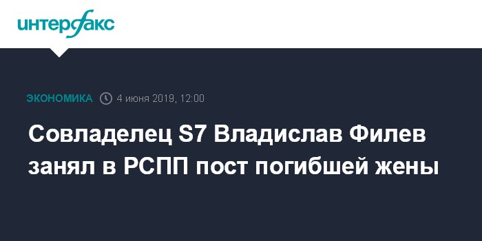 Совладелец S7 Владислав Филев занял в РСПП пост погибшей жены