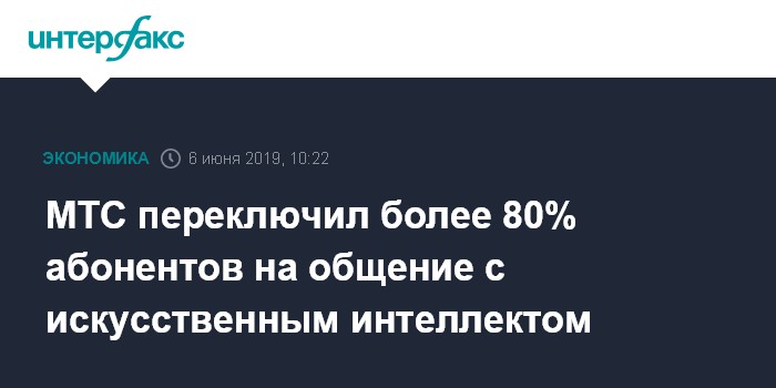 Москва. 6 июня. INTERFAX.RU - Чат-бот ПАО "МТС", созданный на базе собственной разработки искусственного интеллекта (ИИ) компании, в настоящее время обслуживает более 80% абонентов, которые обращаются к оператору, сообщил директор центра инноваций МТС Владимир Хренков.