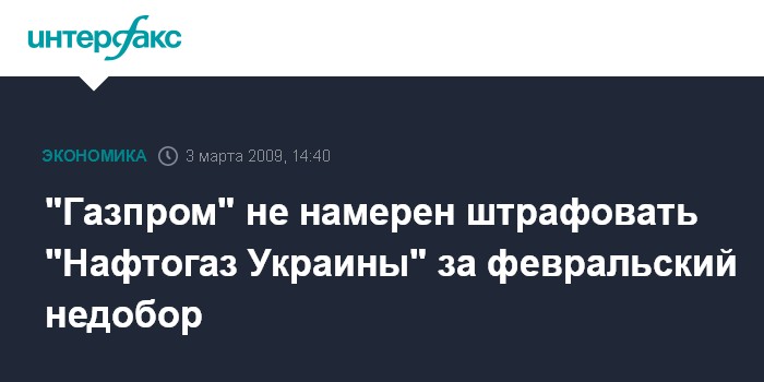 Москва. 3 марта. INTERFAX.RU - "Газпром" не будет применять штрафные санкции к "Нафтогазу Украины" за недобор газа в феврале текущего года, заявил глава "Газпрома" Алексей Миллер.