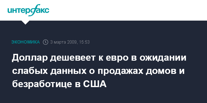 Москва. 3 марта. INTERFAX.RU - Курс доллара снижается во вторник к евро в ожидании слабых данных о продажах домов и безработице в США, которые будут опубликованы на этой неделе, сообщило агентство Bloomberg.