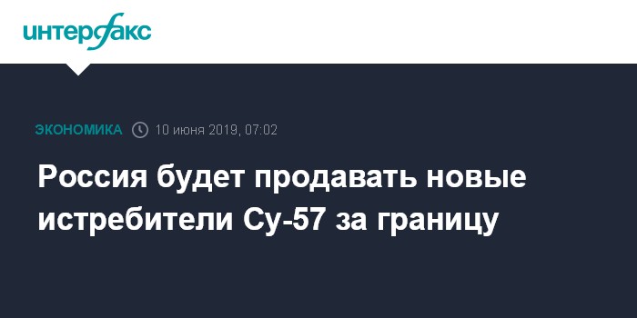 Москва. 10 июня. INTERFAX.RU - Экспорт российского истребителя пятого поколения Су-57 запланирован, но только после принятия его на вооружение, заявил "Интерфаксу" вице-премьер Юрий Борисов.