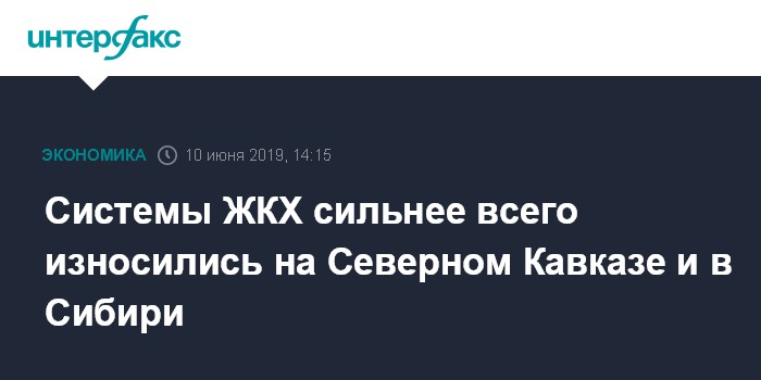 Москва. 10 июня. INTERFAX.RU - По данным Минстроя, наибольший износ систем ЖКХ наблюдается в регионах Северного Кавказа и Сибири. Об этом "Интерфаксу" сообщил замглавы ведомства Максим Егоров.
