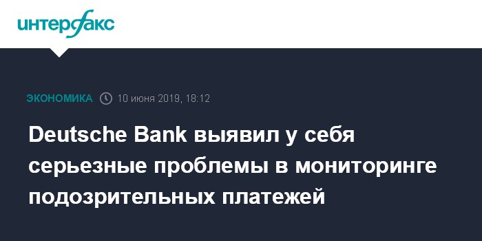 Москва. 10 июня. INTERFAX.RU - Deutsche Bank AG по результатам внутренней проверки выявил серьезные проблемы в системе контроля за отмыванием средств, в результате чего крупные платежи могли проходить без должного мониторинга со стороны службы безопасности, сообщает Financial Times.