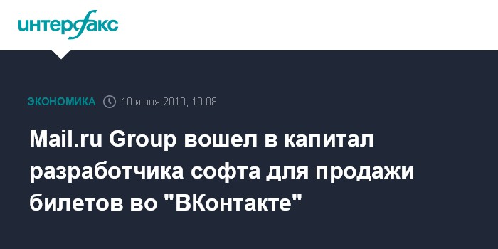Mail.ru Group вошел в капитал разработчика софта для продажи билетов во "ВКонтакте"