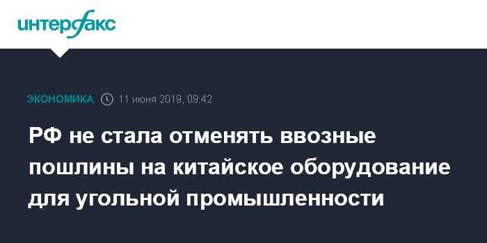 РФ не стала отменять ввозные пошлины на китайское оборудование для угольной промышленности