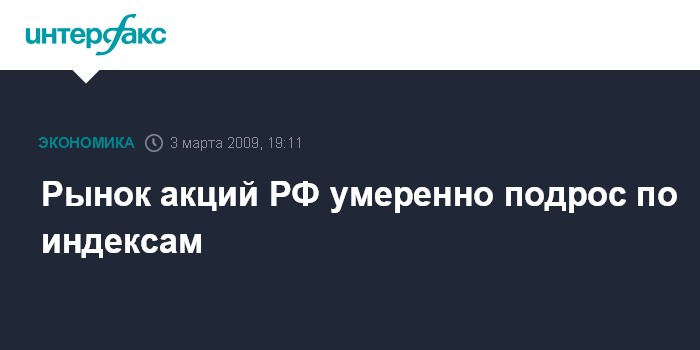 Москва. 3 марта. INTERFAX.RU - Рынок акций РФ во вторник умеренно подрос по основным индексам, поддержку оказала положительная коррекция нефти и американских фондовых индикаторов; упали бумаги "Полюс Золото" на новостях о продаже Владимиром Потаниным крупного пакета компании Сулейману Керимову.