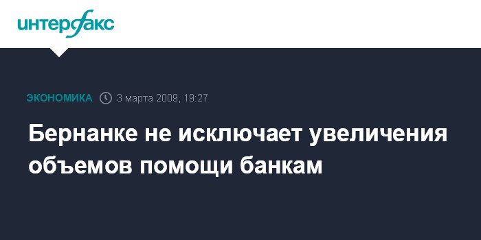Бернанке не исключает увеличения объемов помощи банкам