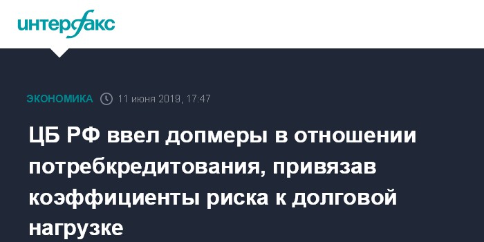 ЦБ РФ ввел допмеры в отношении потребкредитования, привязав коэффициенты риска к долговой нагрузке