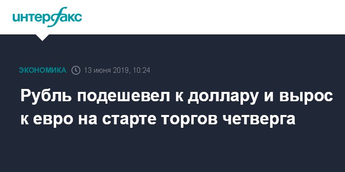 Как отмечают эксперты "Интерфакс-ЦЭА", рубль дешевеет к доллару и растет к евро на торгах после праздничного выходного дня в среду, 12 июня. Участники рынка отыгрывают возобновление роста доллара на мировых площадках и снижение интереса инвесторов к рисковым активам в ожидании разрешения торгового конфликта между США и Китаем.