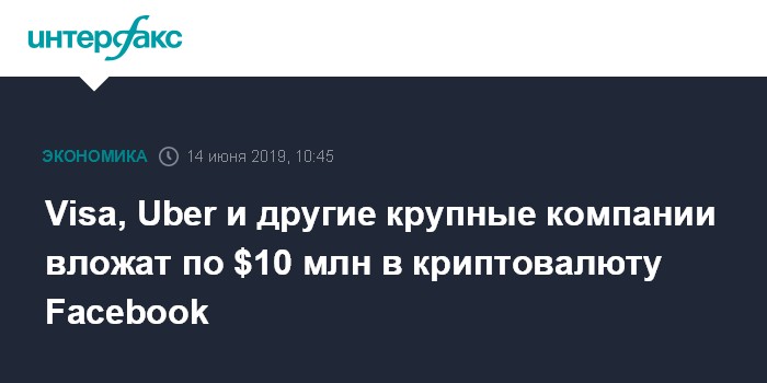 Visa, Uber и другие крупные компании вложат по $10 млн в криптовалюту Facebook