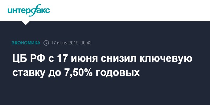 ЦБ РФ с 17 июня снизил ключевую ставку до 7,50% годовых