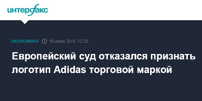 Москва. 19 июня. INTERFAX.RU - Европейский суд общей юрисдикции отказался признать логотип Adidas торговой маркой, защищенной законодательством ЕС. Речь идет о логотипе для обуви из трех параллельных полос, ориентированных в любом направлении, говорится в сообщении пресс-службы суда.