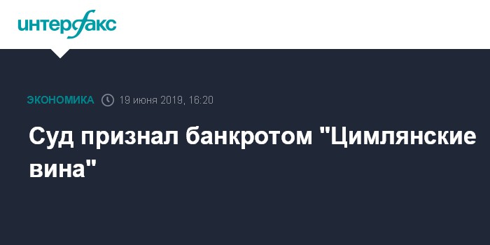 Москва. 19 июня. INTERFAX.RU - Арбитражный суд Ростовской области признал банкротом ОАО "Цимлянские вина" (Ростовская область) и открыл в отношении предприятия конкурсное производство сроком до 21 ноября 2019 года, следует из материалов картотеки арбитражных дел.