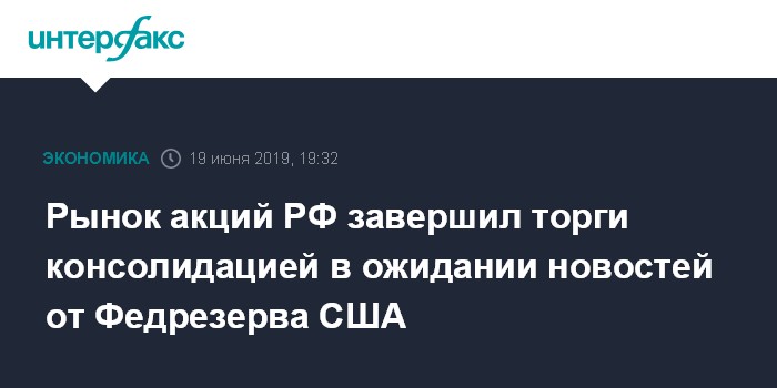 Рынок акций РФ завершил торги консолидацией в ожидании новостей от Федрезерва США