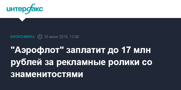 "Аэрофлот" заплатит до 17 млн рублей за рекламные ролики со знаменитостями
