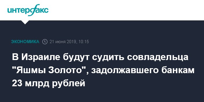 В Израиле будут судить совладельца "Яшмы Золото", задолжавшего банкам 23 млрд рублей