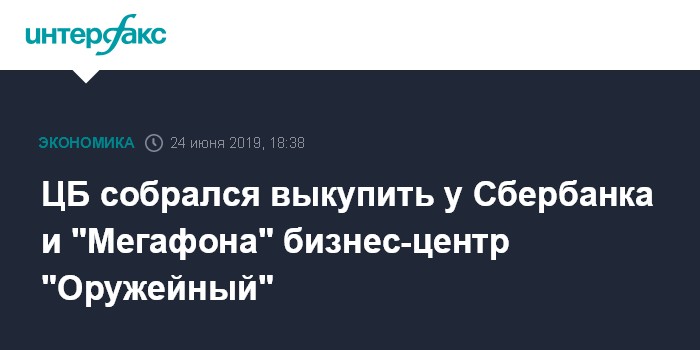 Сейчас ЦБ ведет переговоры о приобретении бизнес-центра на Садовом кольце с его нынешними владельцами - "Мегафоном" и Сбербанком, сообщил "Интерфаксу" источник, знакомый с планами регулятора, и подтвердили два собеседника среди консультантов рынка недвижимости. Это именно покупка "Оружейного", а не аренда части этажей, и ЦБ не будет делить площади с занимающими их ныне "Мегафоном" и Сбербанком, сказал один из собеседников агентства.