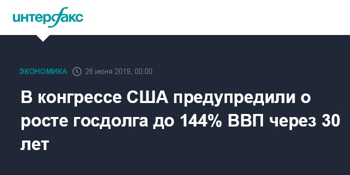 Москва. 25 июня. INTERFAX.RU - Государственный долг США достигнет "беспрецедентных размеров", если законодатели не примут соответствующие меры, говорится в отчете управления конгресса США по бюджету, опубликованном CNN во вторник.