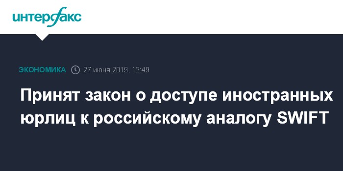 Принят закон о доступе иностранных юрлиц к российскому аналогу SWIFT