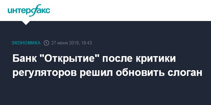Москва. 27 июня. INTERFAX.RU - Банк "Открытие", представивший новую стратегию бренда с упором на госучастие и подвергшийся критике регуляторов за это, решил поменять слоган.